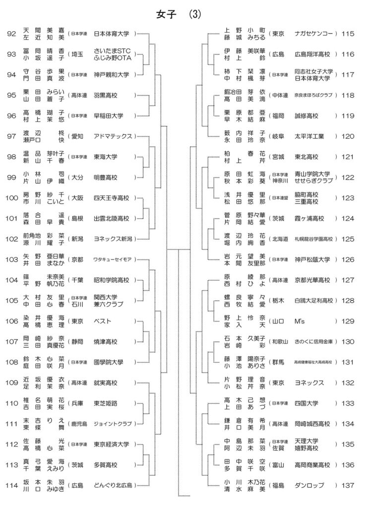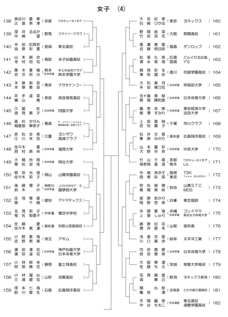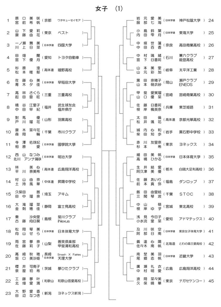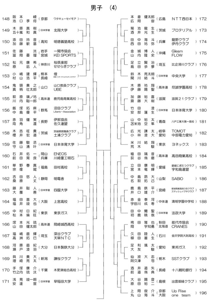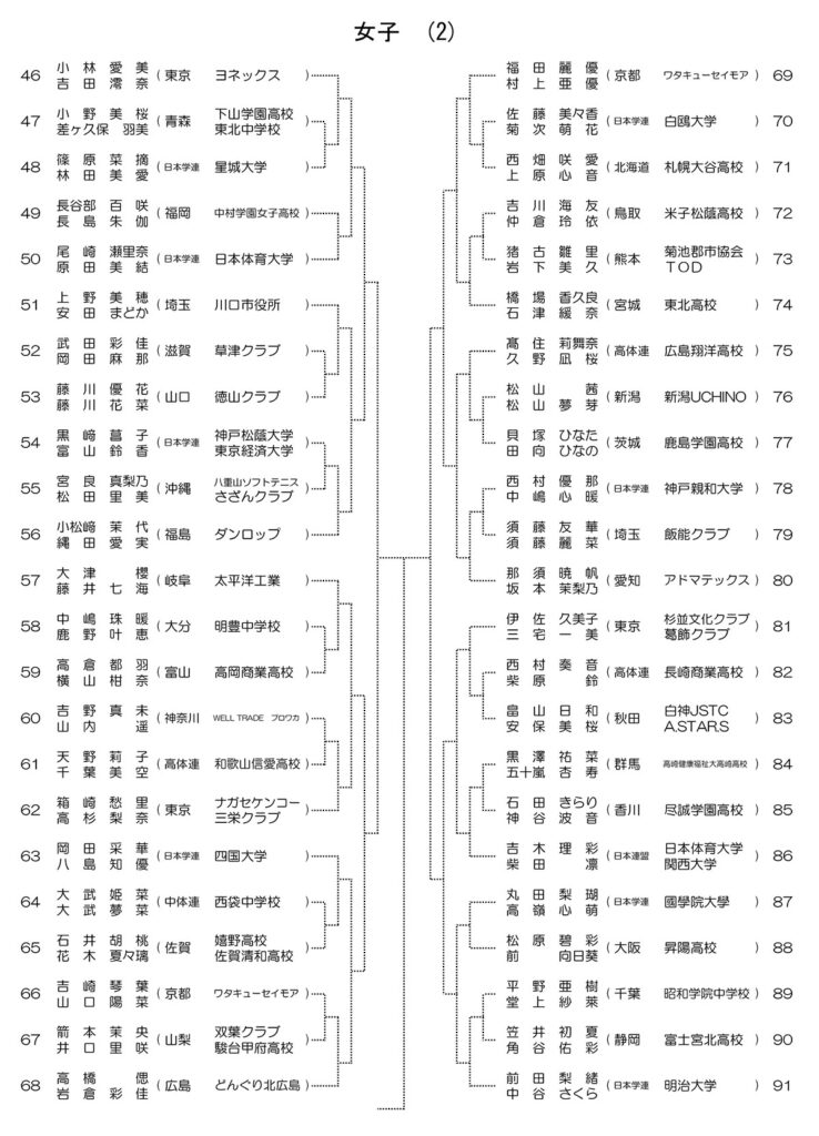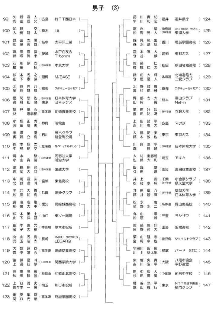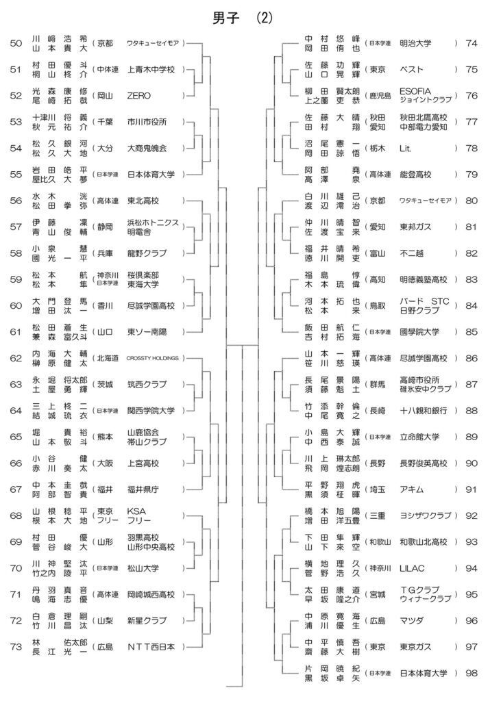 日本一への過酷なトーナメント。男女の組み合わせドロー表(PDF)を分割して掲載します。画像をクリックすると、拡大することができます。